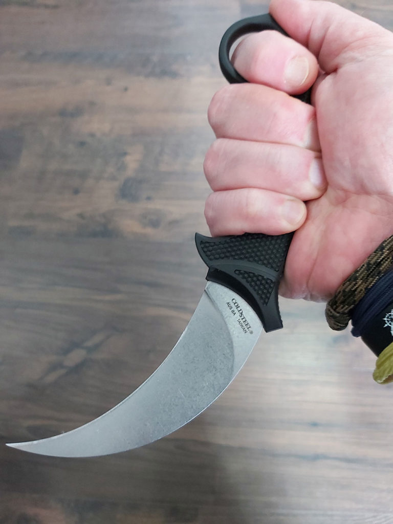 The Cold Steel Steel Tiger is a great quality karambit style knife that is wonderfully comfortable to hold thanks to its ergonomic handle design. It is made from good quality materials and the curved blade gives it excellent cutting power.