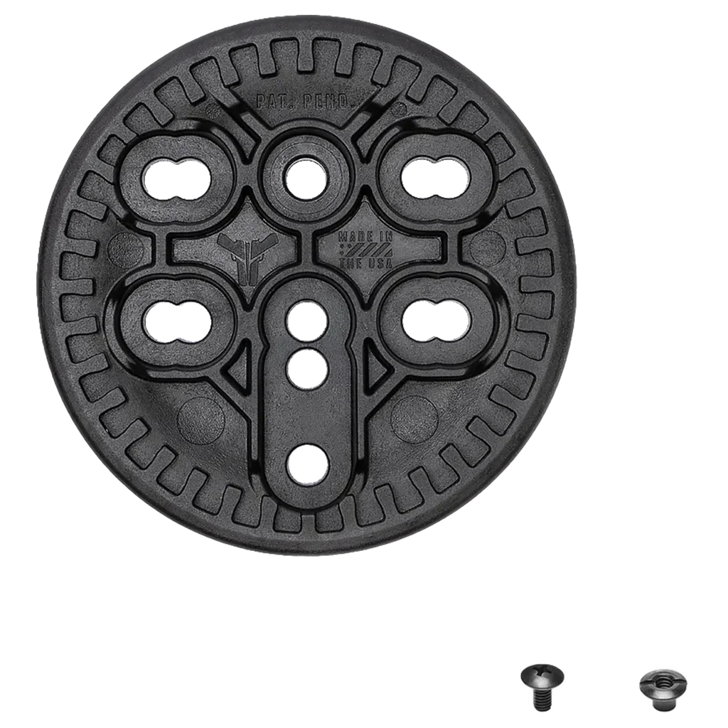 Take all your gear to the next level and make it compatible with the Tek-Mount Receiver with additional 360 Insert Disks. The Tek-Mount™ 360 Insert Disk™ is the male portion of the Tek-Mount™ quick connect mounting system. It can be quickly mounted to many different holsters and mag pouches to provide instant compatibility with the female portion, the Tek-Mount™ Receiver. The Tek-Mount is a two-part quick-connect mounting system. This mounting system provides the same function, speed, and ease of use as the Safariland® QLS but with the added ability to cant your holster instantly without the use of screws or posts. The patent pending Tek-Mount mounting system allows for 10-degree cant increments in 360 degrees. The 360 Insert Disk is to be affixed to your holster, mag pouch, knife sheath, or any other carried gear and is compatible with a variety of other holster attachments. What's Included 1x Tek-Mount 360 Insert Disk 3x 3/16" Posts 3x 5/16" Truss Head Screws