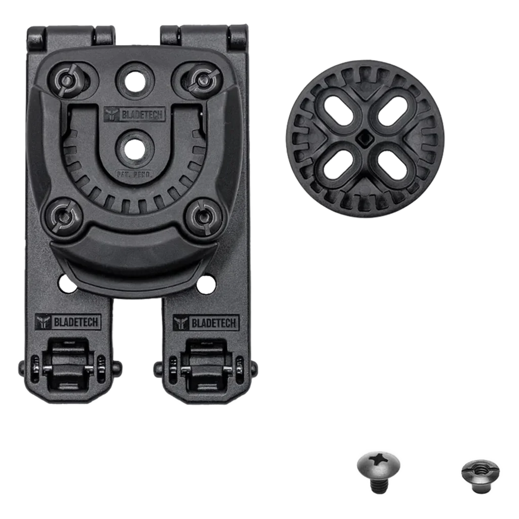 The Tek-Mount™ Mini is a two-part quick connect mounting system that consists of a receiver and a Mini 360 Insert Disk- Just like our full size Tek-Mount. Much like the Safariland® ELS, the Tek-Mount Mini provides the same functionality, speed, and ease of use but with the added ability to cant your gear instantly without the use of tools. The patent pending Tek-Mount™ Mini allows for 15-degree cant increments for 24 unique cant positions. The Tek-Mount Mini Receiver is to be affixed to Belt attachments as a belt mount, Molle Attachments, and more. 1x Tek-Mount Mini Receiver 1x Tek-Mount Mini 360 Insert Disk 4x 3/16" Posts 4x 1/4" Truss Head Screws