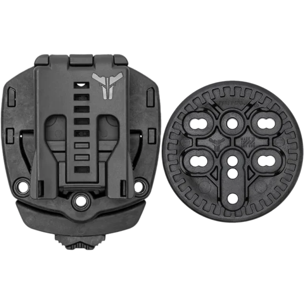The Tek-Mount™ on Tek-Lok® Belt Attachment is a two part quick connect mounting system consisting of a Receiver and a 360 Insert Disk™. This system provides the same function, speed, and ease of use as the Safariland® QLS but with the added ability to cant your holster instantly without the use of screws or posts. The patent pending Tek-Mount allows for 10 degree cant increments in 360 degrees. The Tek-Mount Receiver comes pre installed on a Tek-Lok Belt Attachment which can accommodate up to a 2.25” belt. While the Tek-Mount 360 Insert Disk is to be affixed to your holster, mag pouch, knife sheath, or any other carried gear. WHAT'S INCLUDED 1x Tek-Mount Receiver on Tek-Lok Belt Attachment 1x Tek-Mount 360 Insert Disk 3x 3/16" Posts 3x 5/16" Truss Head Screws