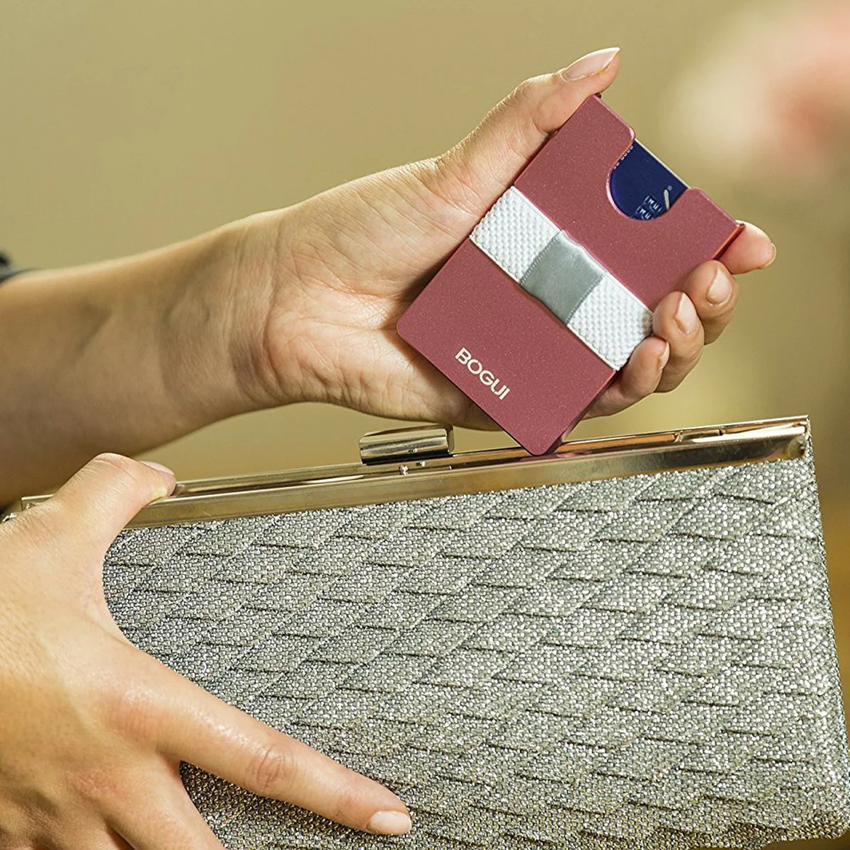 - The BOGUI SLIP Wallet is an ultra-lightweight minimalist wallet, perfect for holding your essential cards1 The flexible slip strap allows you to easily access and secure your most important credit cards and IDs.