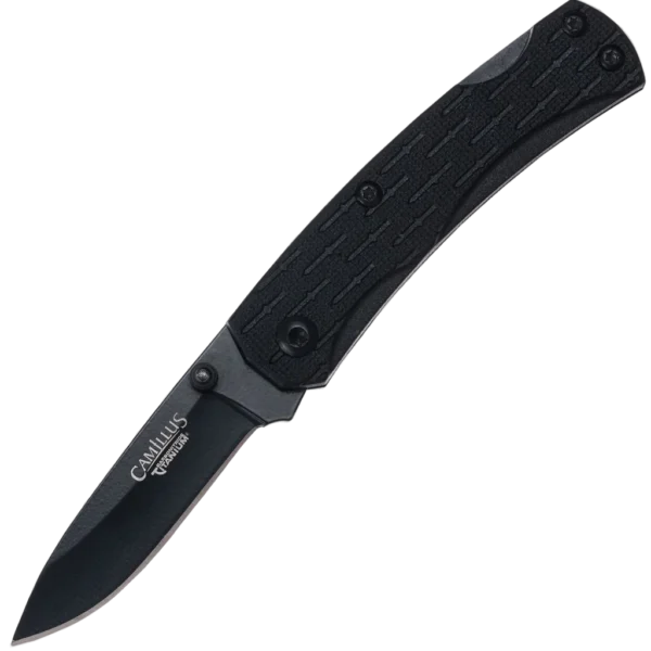 Camillus CamLite Mini Folding Knife with 440 Steel Blade. The 2 inch 440 blade is bonded with Carbonitride Titanium that resists rust and corrosion and is up to 10x harder than untreated steel so the blade stays sharper, longer. Features a Bayonet etched Glass Filled Nylon handle, a material used in many of our knives to provide you the strongest and most rigid handle.
