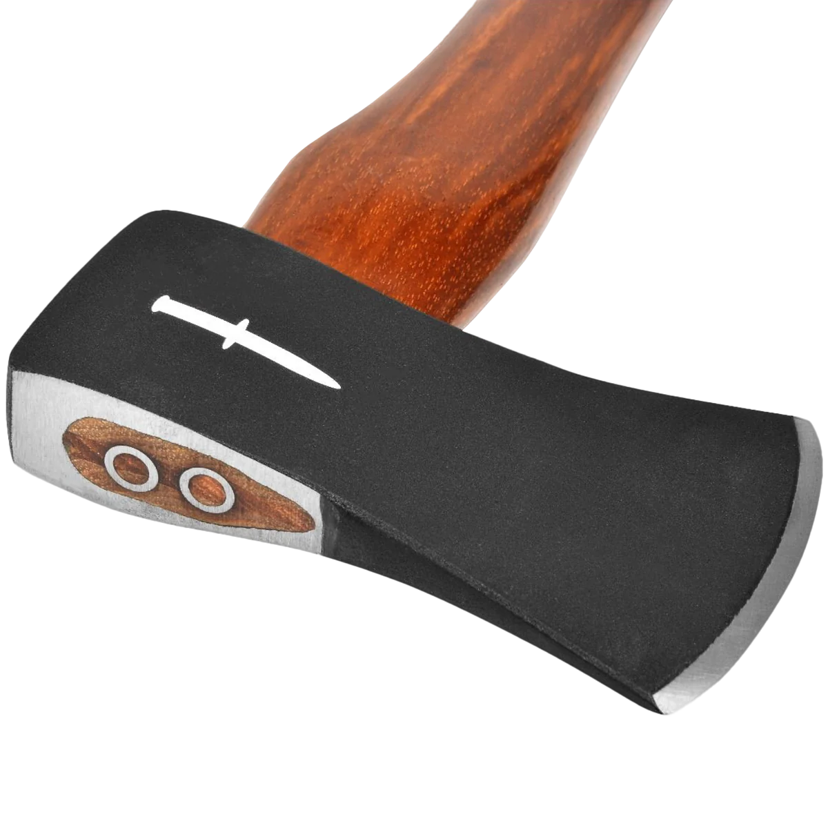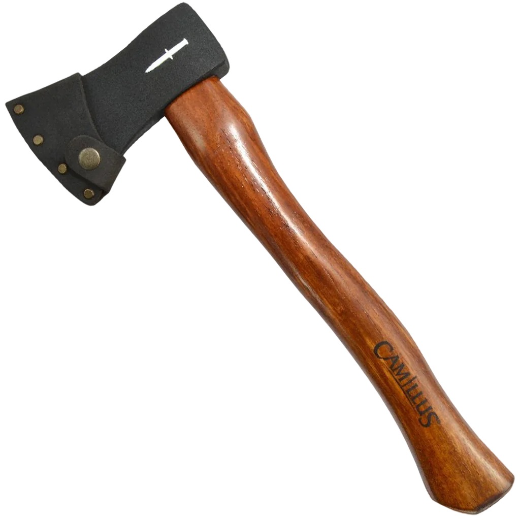 The Camillus 16" Hatchet with Hickory Handle and Leather Sheath, a versatile and durable tool designed to tackle various chopping and cutting tasks. This hatchet combines a compact size with exceptional strength, making it a reliable companion for camping, hiking, survival situations, and general outdoor activities. The hatchet features a robust forged carbon steel head that ensures long-lasting durability and excellent chopping performance. The sharp blade is designed to penetrate wood efficiently, allowing for precise and effective cutting. The hatchet boasts a 14-inch hickory handle, renowned for its superior strength, shock absorption, and comfortable grip. Crafted from genuine hickory wood, this handle provides excellent control, reducing fatigue during extended use. Its natural beauty and grain patterns also add an aesthetic appeal to the tool. Compact and Portable: With a compact design and a length of 16 inches, this hatchet strikes the perfect balance between portability and functionality. It easily fits into your backpack, tool kit, or camping gear, making it an ideal tool for outdoor enthusiasts and professionals on the go. It excels at tasks such as chopping firewood, preparing kindling, clearing brush, and even light hammering, thanks to its sturdy construction and balanced weight distribution. This hatchet comes with a premium leather sheath that enhances safety and convenience. The sheath is meticulously crafted to securely hold the hatchet, providing protection for the blade during storage and transportation.