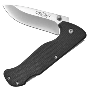The Camillus Bushcrafter Mini folding knife features a compact, yet robust, 2.75" blade. Crafted with 440 stainless steel and bonded with titanium, the Bushcrafter Mini is perfect for those seeking a balance between toughness, edge sharpness, and corrosion resistance. Additionally, the titanium bonding makes the blade 3x harder than regular steel, offering exeptional edge retention so you can have a knife that stays sharp for the long haul. The Micarta handle is made of an extremely durable makeup of linen layers soaked in resin, then highly compressed and baked. This makes for a handle impervious to moisture or liquid, enduring and stable regardless of climate or conditions. The Bushcrafter Mini also features a convenient lock back system and clip for secure storage and easy access.