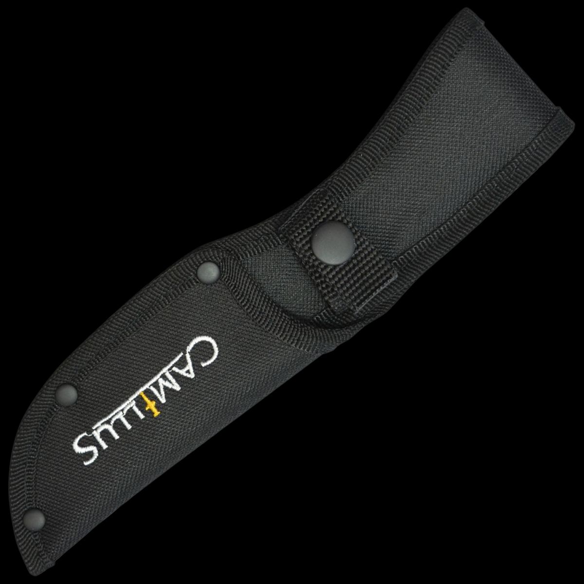 Camillus MASK 9" Fixed Blade Knife with a Prym1 Camo handle and 420 Steel Blade. 420 is a hard and strong steel is commonly used in knife blades and offers good corrosion resistance at a low cost. The steel is bonded with Titanium that resists rust and corrosion and is up to 3x harder than untreated steel so the blade stays sharper, longer. 4" Drop Point Blade. Included is a Ballistic Nylon sheath that will prtect your blade from debris and other foreign objects when not in use.