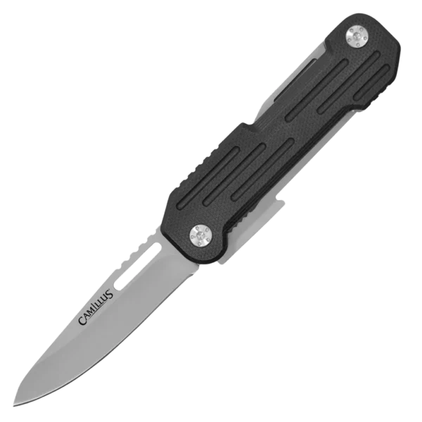The Camillus Pocket Block Folding Knife features hard, strong 420J2 steel with good edge retention capabilities while also being fairly easy to resharpen. This steel also strikes a good balance between blade hardness and corrosion resistance. The handle is made of G10, an extremely durable makeup of fiberglass layers soaked in resin, then highly compressed and baked. After this process is completed, G10 becomes impervious to moisture or liquid and extremely durable under rapidly shifting environmental conditions, affording a high degree of versatility and protection in the field. However, the true versatile nature of the Pocket Block comes from the 5 integrated tools within the handle. Featuring a knife, bottle opener, flat head screwdriver, can opener, and #2 Phillips screwdriver, the Pocket Block is the ultimate multitool for everyday use.
