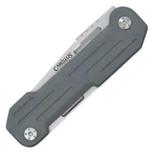 The Camillus Pocket Block Folding Knife features hard, strong 420J2 steel with good edge retention capabilities while also being fairly easy to resharpen. This steel also strikes a good balance between blade hardness and corrosion resistance. The handle is made of G10, an extremely durable makeup of fiberglass layers soaked in resin, then highly compressed and baked. After this process is completed, G10 becomes impervious to moisture or liquid and extremely durable under rapidly shifting environmental conditions, affording a high degree of versatility and protection in the field. However, the true versatile nature of the Pocket Block comes from the 5 integrated tools within the handle. Featuring a knife, bottle opener, flat head screwdriver, can opener, and #2 Phillips screwdriver, the Pocket Block is the ultimate multitool for everyday use.