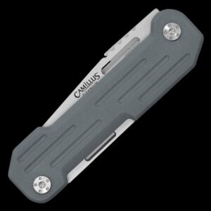 The Camillus Pocket Block Folding Knife features hard, strong 420J2 steel with good edge retention capabilities while also being fairly easy to resharpen. This steel also strikes a good balance between blade hardness and corrosion resistance. The handle is made of G10, an extremely durable makeup of fiberglass layers soaked in resin, then highly compressed and baked. After this process is completed, G10 becomes impervious to moisture or liquid and extremely durable under rapidly shifting environmental conditions, affording a high degree of versatility and protection in the field. However, the true versatile nature of the Pocket Block comes from the 5 integrated tools within the handle. Featuring a knife, bottle opener, flat head screwdriver, can opener, and #2 Phillips screwdriver, the Pocket Block is the ultimate multitool for everyday use.