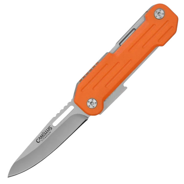 The Camillus Pocket Block Folding Knife features hard, strong 420J2 steel with good edge retention capabilities while also being fairly easy to resharpen. This steel also strikes a good balance between blade hardness and corrosion resistance. The handle is made of G10, an extremely durable makeup of fiberglass layers soaked in resin, then highly compressed and baked. After this process is completed, G10 becomes impervious to moisture or liquid and extremely durable under rapidly shifting environmental conditions, affording a high degree of versatility and protection in the field. However, the true versatile nature of the Pocket Block comes from the 5 integrated tools within the handle. Featuring a knife, bottle opener, flat head screwdriver, can opener, and #2 Phillips screwdriver, the Pocket Block is the ultimate multitool for everyday use.