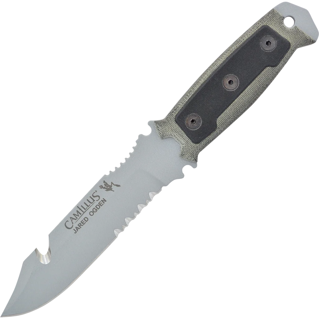 Since 1876, Camillus Cutlery has been supplying the world with reliable, innovative and quality-made knives that have survived the true test of time. As one of the oldest knife manufacturers, Camillus Cutlery has always answered the call for quality and will continue to do so with our hunting, fishing, sporting and tactical knives. Camillus SKOL Fixed Blade Knife is a 10.5" overall Full Tang knife with a 4.87" blade. The 1095 High Carbon blade is clip point, partially serrated, and has a gut hook for multi-purpose use. The handle is made of extremely strong and resistant Micarta with a G10 inlay providing more durability. Included is a Molded ABS Sheath with 360 degree belt clips for multi-position use. The SKOL is a collaboration with Jared Ogden, former Navy Seal. Jared was a member of the Military Team on the hit show Ultimate Survival Alaska.