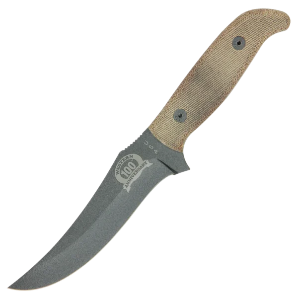 Western 9.25" Skinner Fixed Blade Knife with Leather Sheath This Western Skinner is a true American classic hunting design. Excellent ergonomics, attention to detail, and great fit and finish are standard on the Anniversary Skinner. The blade is full tang, the Micarta handle scales are removable, and the sheath is genuine leather.