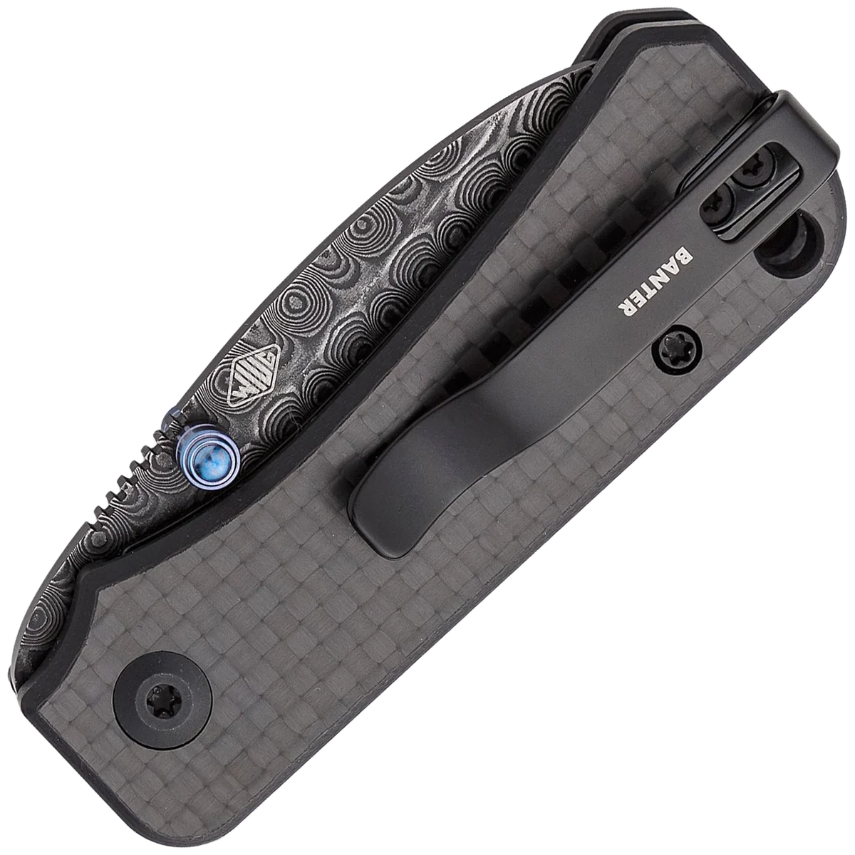 Ben Peterson Designed the Baby Banter as the little brother to the WE Knife Co. Banter. It features many of the same excellent and thoughtful design cues as the original, but fits in smaller pockets, weighs significantly less, and is a more affordable option. The knife utilizes a finger choil to give you more real estate to grab onto, making the knife usable, even in large hands. The knife is put together with recessed screws, a recessed pocket clip, a large interface with the liner lock, and a Carbon Fiber and G-10 textured handle. Dual thumb studs allow multiple opening methods and the deep-carry pocket clip is set up for tip-up, right and left-hand carry. The jimping on the thumb ramp is ultra-functional and the lanyard hole is large enough for 550-paracord.