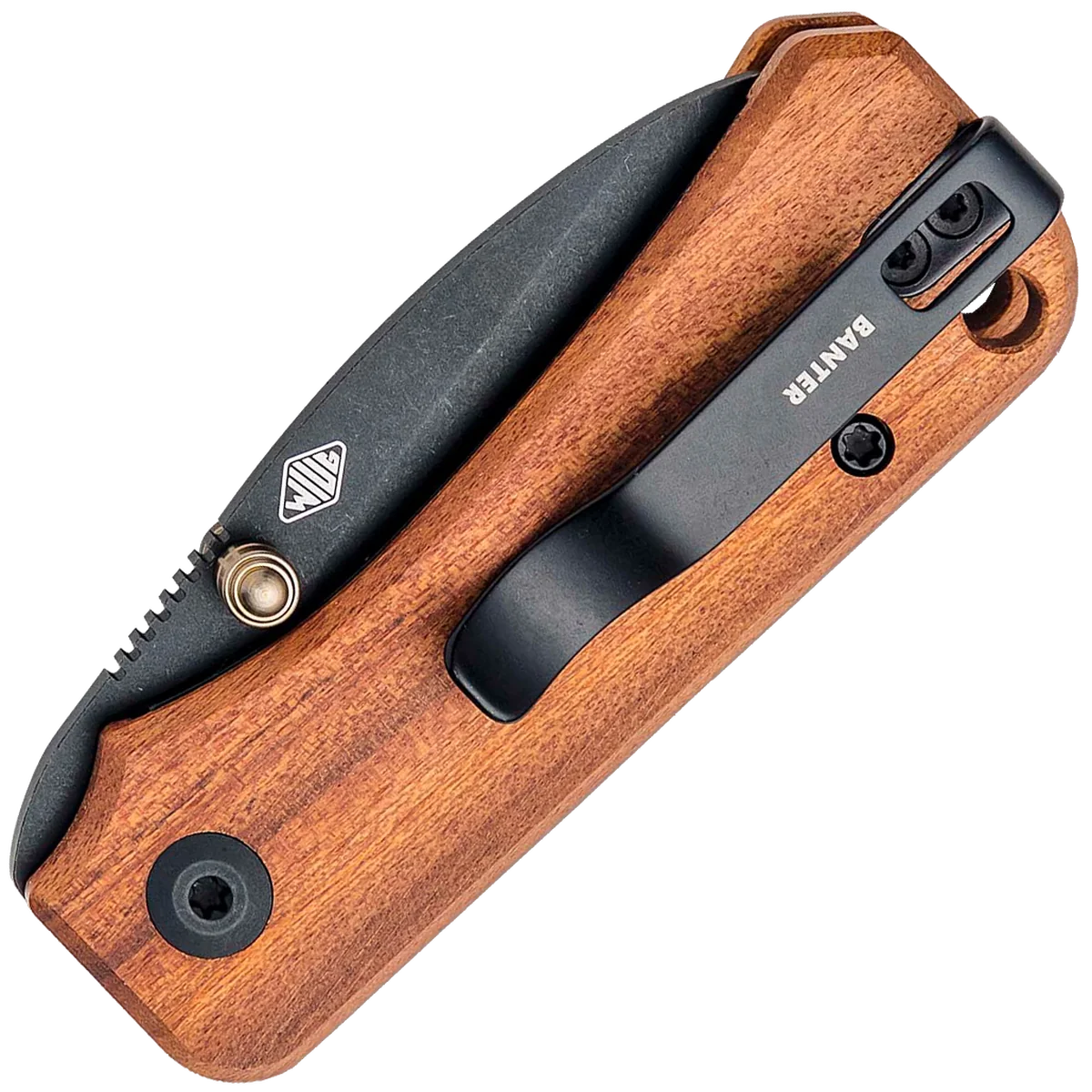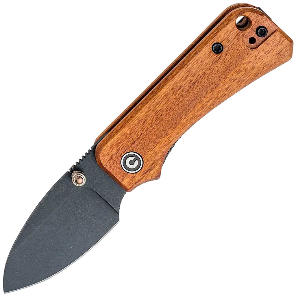 Ben Peterson Designed the Baby Banter as the little brother to the WE Knife Co. Banter. It features many of the same excellent and thoughtful design cues as the original, but fits in smaller pockets, weighs significantly less, and is a more affordable option. The knife utilizes a finger choil to give you more real estate to grab onto, making the knife usable, even in large hands. The knife is put together with recessed screws, a recessed pocket clip, a large interface with the liner lock, and a Guibourtia Wood handle. Dual thumb studs allow multiple opening methods and the deep-carry pocket clip is set up for tip-up, right and left-hand carry. The jimping on the thumb ramp is ultra-functional and the lanyard hole is large enough for 550-paracord.