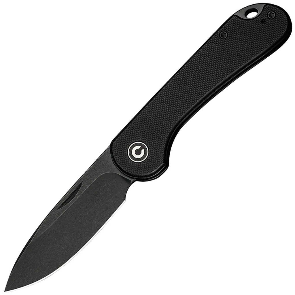 The CIVIVI Elementum is a refined everyday carry folding knife that pairs classic design with modern performance. Built for those who value reliability and craftsmanship, this knife is as functional as it is stylish. Its 2.96” Sandvik 14C28N steel drop point blade delivers impressive edge retention, corrosion resistance, and toughness, making it perfect for a wide range of cutting tasks. Finished with a rugged black stonewash coating, the blade resists wear and minimizes glare, making it as practical as it is stylish. This Elementum model keeps things simple and functional with a nail nick for easy, controlled opening. Whether you're slicing through rope, opening packages, or handling precision cuts, this knife is designed to perform effortlessly. The black G-10 handle brings durability and comfort together in a lightweight, ergonomic design. Textured for enhanced grip and control, the handle ensures a secure hold even in wet or slippery conditions. Its slim profile allows for comfortable carry, while the 4.06” closed length makes it easy to slip into your pocket without adding bulk. When fully opened at 7.02”, the Elementum provides just the right amount of cutting surface without sacrificing portability.