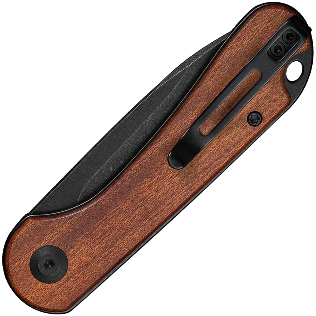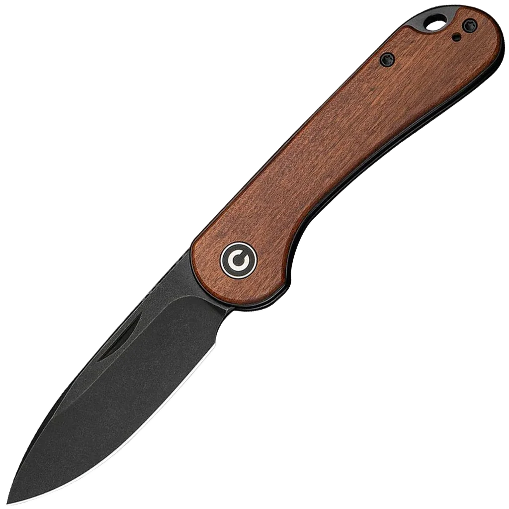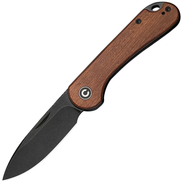 The CIVIVI Elementum Guibourtia is a refined everyday carry folding knife that blends classic materials with modern performance. Designed for those who appreciate both function and aesthetics, this knife delivers reliability in a timeless package. Its 2.96” Sandvik 14C28N steel drop point blade is built for sharpness, durability, and corrosion resistance, making it an excellent choice for daily cutting tasks. The black stonewash finish adds a rugged appeal while reducing glare and minimizing visible wear over time. This version of the Elementum features a nail nick for a traditional, controlled opening. The washer pivot system ensures a smooth deployment, making it easy to operate when needed. The real standout is the Guibourtia wood handle, bringing warmth and natural beauty to this already impressive knife. Known for its rich grain and durability, Guibourtia wood gives the Elementum a unique character that only gets better with age. It’s not just about looks—the smooth, contoured handle provides a comfortable and secure grip, ensuring a satisfying feel in hand. With a closed length of 4.06”, the Elementum is compact enough for effortless pocket carry, while its 7.02” overall length makes it a practical tool for everyday use.
