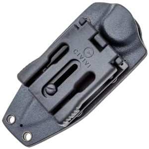 Supremely constructed with a full tang and a satin finished drop point blade of D2 steel, this knife is tough and sharpens well. CIVIVI lengthened the blade of this version by a full inch and the handle by a half-inch over the original but kept the classic shape. The flipper tab design is still present in the form of the finger guard and the jimping on the spine provides a great grip. Lightweight and ergonomic, this version features a flat, textured dark green micarta handle for a rugged look. The black Kydex sheath includes a Bob Terzuola T-Clip for easy belt carry and CIVIVI's included a tied paracord lanyard pre-attached to the knife.
