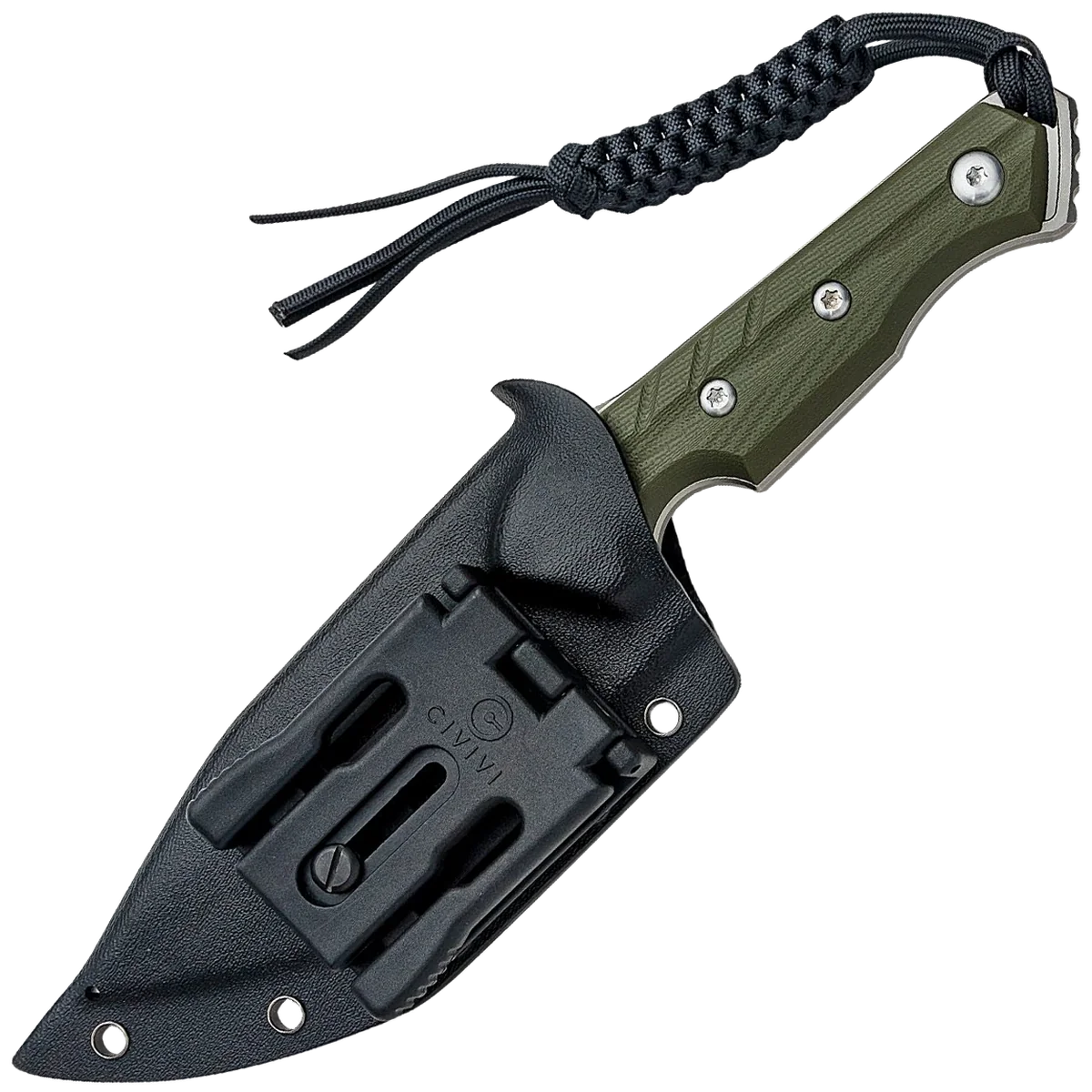 The CIVIVI Maxwell is a sturdy and versatile fixed blade knife with a 4.74-inch D2 blade and a G10 handle. The handle is a strong, textured G-10 for great grip, there's a finger notch for user safety, and the full tang design gives you strength you can depend on.