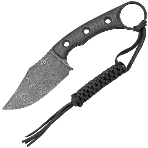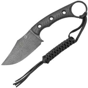 - Compact and easy to carry, this fixed blade comes with a Kydex sheath and a black tied paracord lanyard.