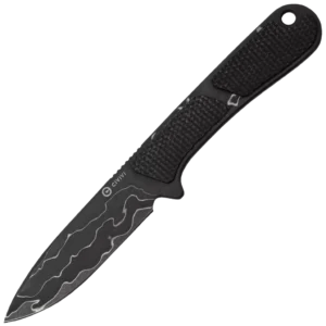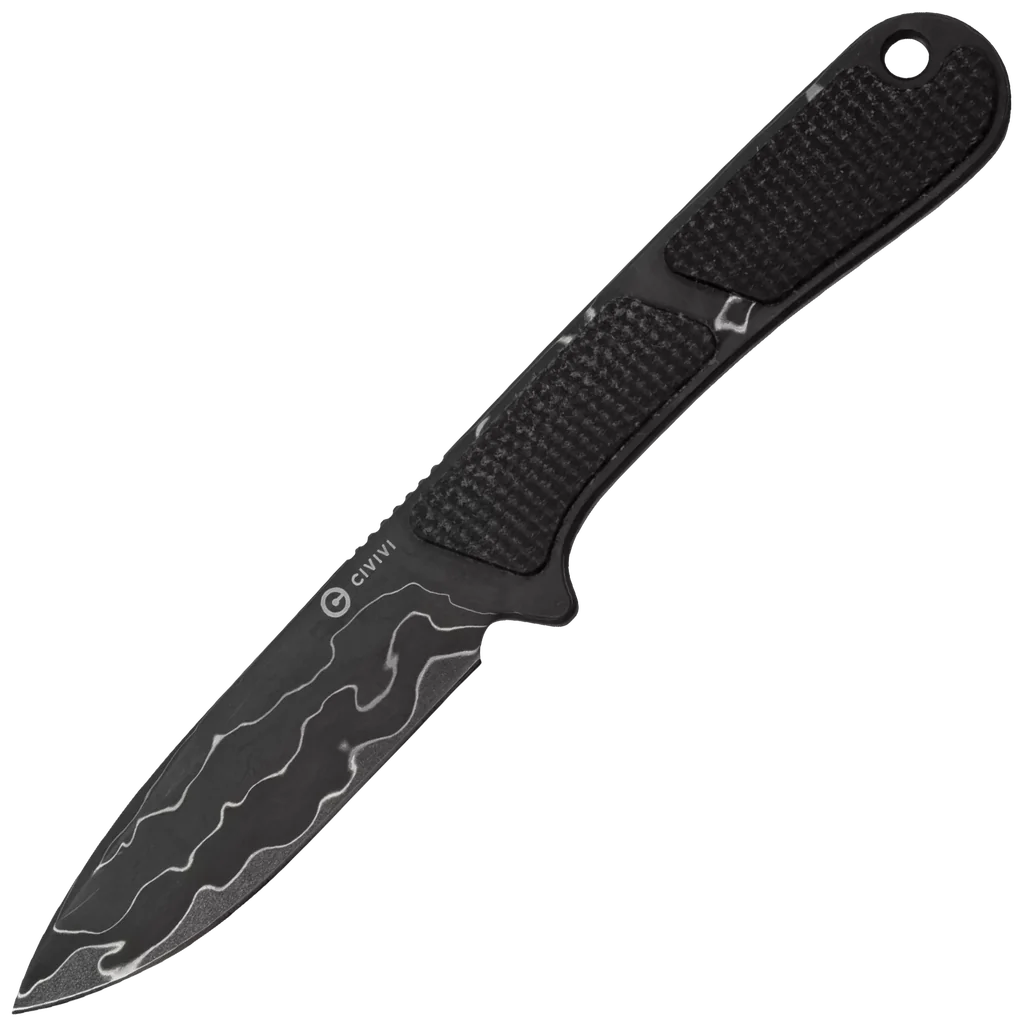 The CIVIVI Mini Elementum Fixed Blade is a compact and sleek knife. With a Damascus steel blade featuring a slicey hollow grind and a versatile drop point shape, this knife offers exceptional cutting performance. The handle provides a secure and comfortable grip, while the black kydex sheath and black bead chain ensure convenient carry options. Designed with a full tang construction, this one-piece steel knife is built to withstand the rigors of everyday use.