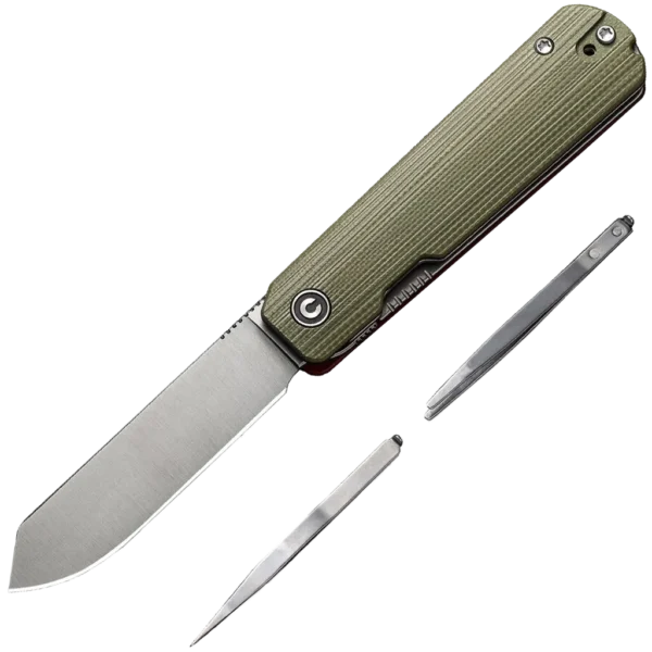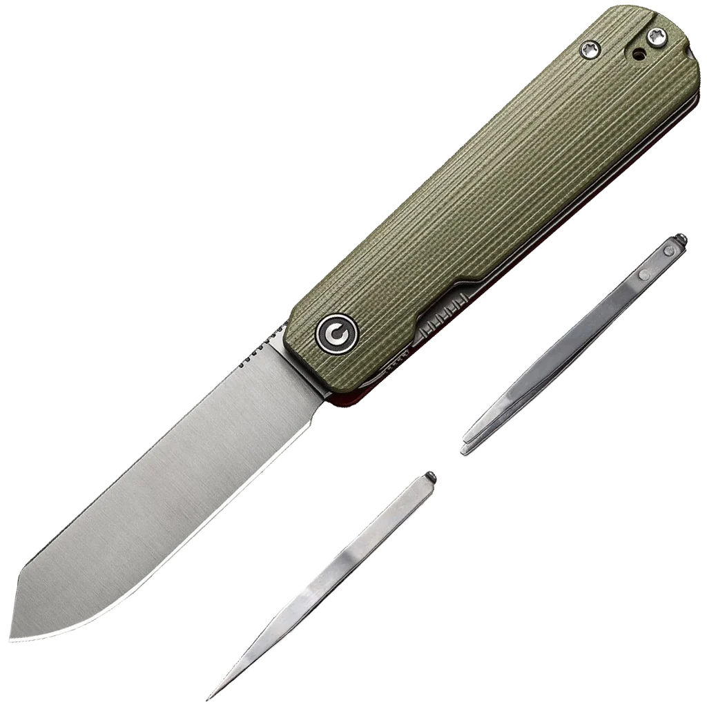 The Ben Petersen designed CIVIVI Sendy is a simple, yet classy liner lock knife that seamlessly conceals tweezers and a metal toothpick. The Nitro-V blade offers a nice blend of toughness and edge retention, and the G-10 handle makes for a tactile gripping material. Both the flipper tab and liner lock are subtle and unobtrusive, but are still easy to operate and function. If your EDC needs require a sleek and slim profile, but with the durability to handle a variety of tasks ranging from household projects to outdoor jobs, the Sendy is for you.