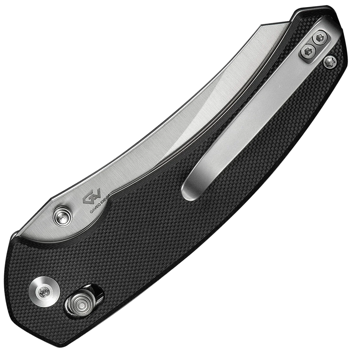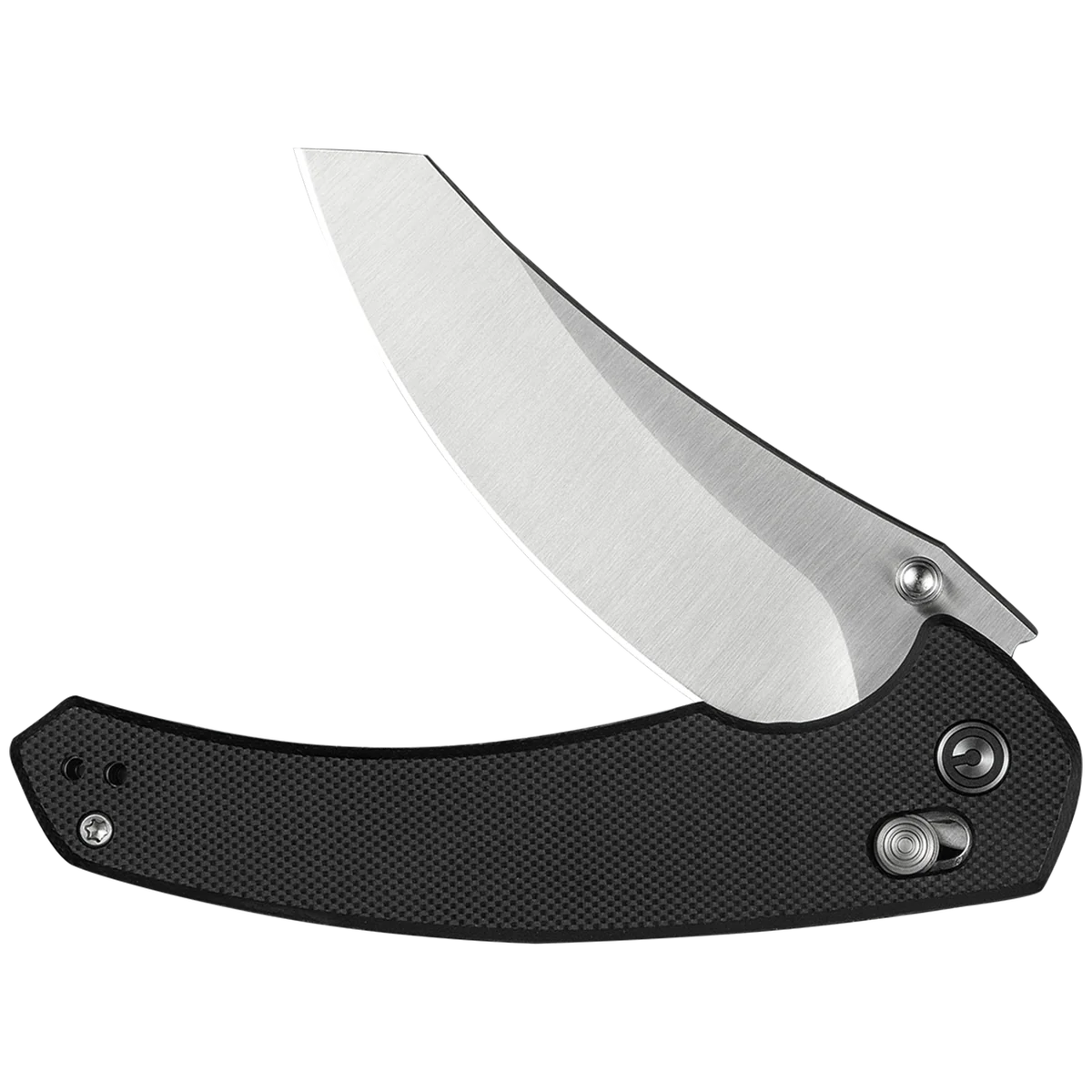 The CIVIVI Sixgill Pocket Knife, designed by Gavko Knives, has a Black G-10 Handle and a 3.41" Nitro-V Reverse Tanto blade with a Satin finish. It measures 7.78" when opened and is secured with a crossbar lock. The Sixgill utilises a thumb stud opener with a ball bearing pivot for smooth action for easy single-handed use. The stainless steel tip up pocket clip can be mounted on either side of the folding knife for ambidextrous carry.