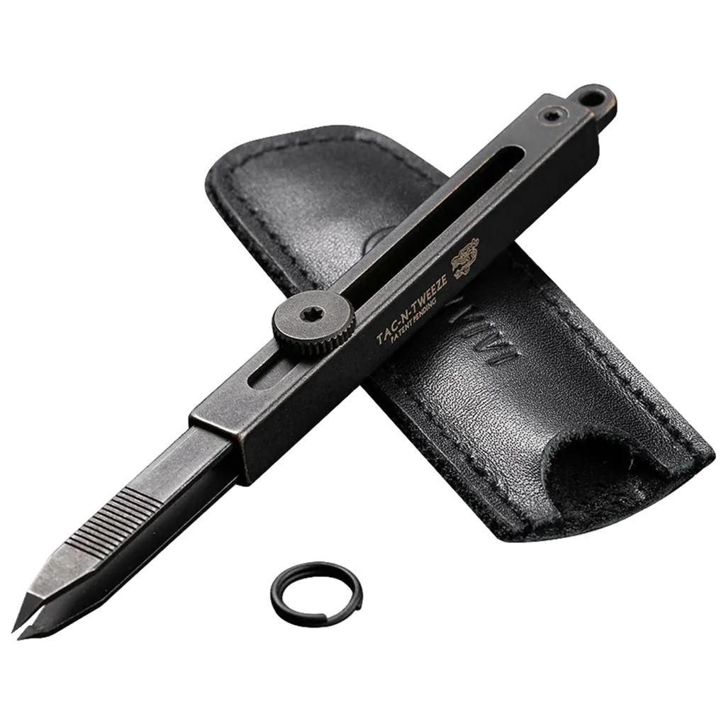 The Tac-N-Tweeze was designed by Bob Terzuola to be a functional pair of tweezers you can carry on your keychain. The stainless steel tweezers retract into a black stonewashed brass handle frame for safe storage and can be carried in a leather slip sheath in the pocket or on a keyring. You’ll be shocked how useful you find having a good set of tweezers on your person can be with the Tac-N-Tweeze.
