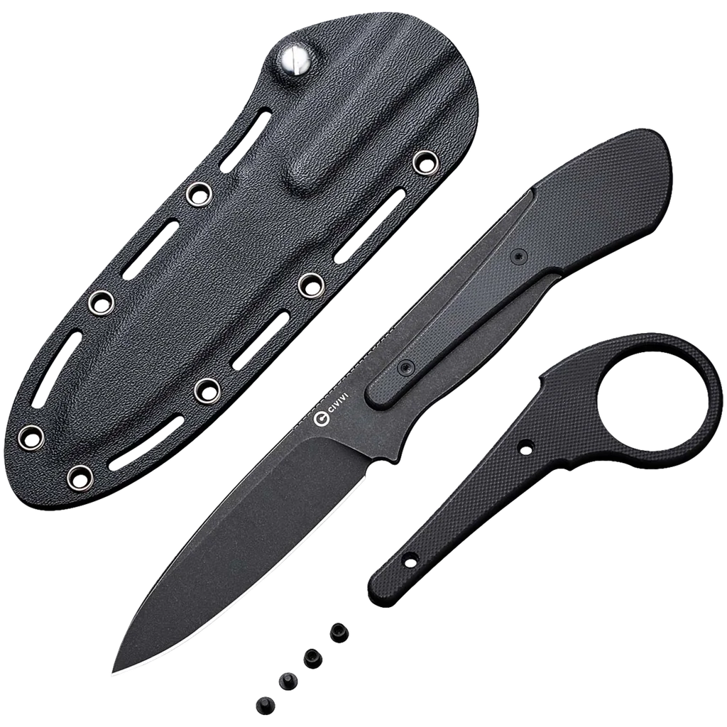 Featuring a compact and lightweight build, the Civivi Varius integrates seamlessly with plate carriers, offering MOLLE-compatible sheath and built-in clip for secure attachment to various gear like boots or belts. The Varius is equipped with a practical modular system and a removable pinky ring.