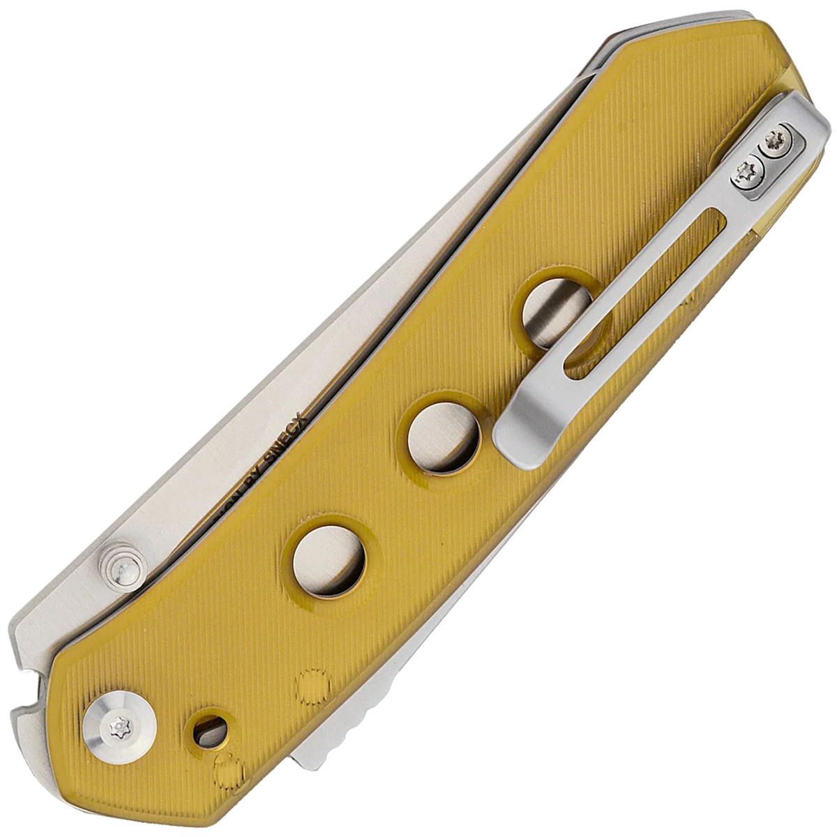 Born from a partnership between WE Knife and Snecx Tan, now available through CIVIVI, the Vision FG folding knife is a refreshing choice for an EDC knife. The design of the knife is universally ambidextrous thanks to the innovative Snecx Superlock mechanism. The SuperLock is an innovative blade locking system, a design created by the designer, Snecx Tan. The two-way lock secures the blade in the open position. The knife is locked by sliding the backspacer backwards, which eliminates accidental unlocking of the blade. Extremely easy disassembly allows access to the knife mechanism for cleaning or maintenance. The dual thumb studs allow for easy one-hand opening of the reverse tanto blade and the pocket clip is reversible for left-hand carry.