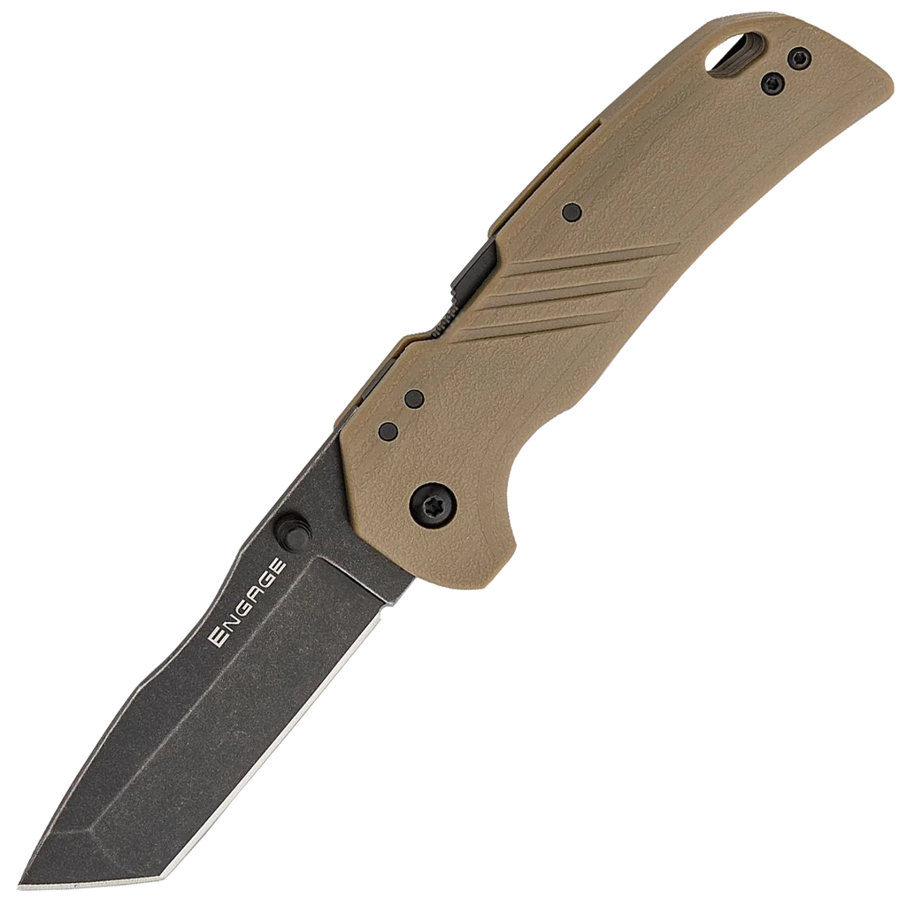 The Engage series of folders are exceptional in that they represent the introduction of Cold Steel's exclusive, patent-pending Atlas Lock. It's a locking mechanism that provides an astonishing level of strength and safety in a folding knife. The Engage blades feature a shallow indent on the spine that makes for a comfortable place for your thumb or index finger when using the knives for precision work. The grips are ergonomically contoured for a secure grip and include large integral lanyard holes. The pocket clips are reversible for left or right-handed use. Built to be an everyday carry workhorse, the Engage is an easy carrying folder with an ample 3-inch 4116 stainless steel blade for toughness and edge retention. The easy-gripping GFN handle is resilient, and the black stonewashed tanto blade allows for detailed and precise cutting, all while looking great.
