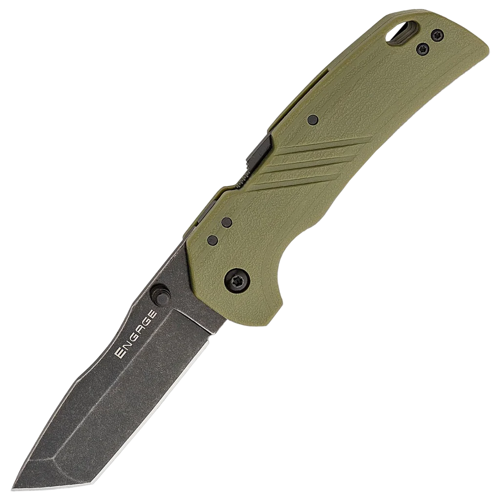 The Engage series of folders are exceptional in that they represent the introduction of Cold Steel's exclusive, patent-pending Atlas Lock. It's a locking mechanism that provides an astonishing level of strength and safety in a folding knife. The Engage blades feature a shallow indent on the spine that makes for a comfortable place for your thumb or index finger when using the knives for precision work. The grips are ergonomically contoured for a secure grip and include large integral lanyard holes. The pocket clips are reversible for left or right-handed use. Built to be an everyday carry workhorse, the Engage is an easy carrying folder with an ample 3-inch 4116 stainless steel blade for toughness and edge retention. The easy-gripping GFN handle is resilient, and the black stonewashed tanto blade allows for detailed and precise cutting, all while looking great.