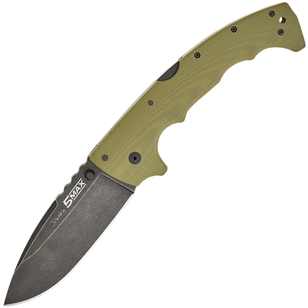Introducing the Cold Steel 5 Max, the tool you need to unleash your inner adventurer! Based on the best selling 4 Max, now with a longer blade and reach. Crafted in collaboration with knife designer Andrew Demko, renowned for crafting some of the finest, most durable knives worldwide, this folder boasts a formidable, razor-sharp 5-inch blade forged from high-quality S35VN steel. This premium material ensures exceptional edge retention and incredible corrosion resistance that easily stands up to years of action. Plus, the blade’s black stonewashed finish makes it even more durable, adding a touch of sophistication for the perfect blend of style and substance. Attached is a dark green, ergonomically designed G10 handle that delivers excellent traction for a solid hold, even when working in the most challenging outdoor conditions. Equipped with Cold Steel’s renowned Tri-Ad Lock, you can trust your blade will stay securely in place during use, providing you with peace of mind and superior, worry-free performance when you need it most.
