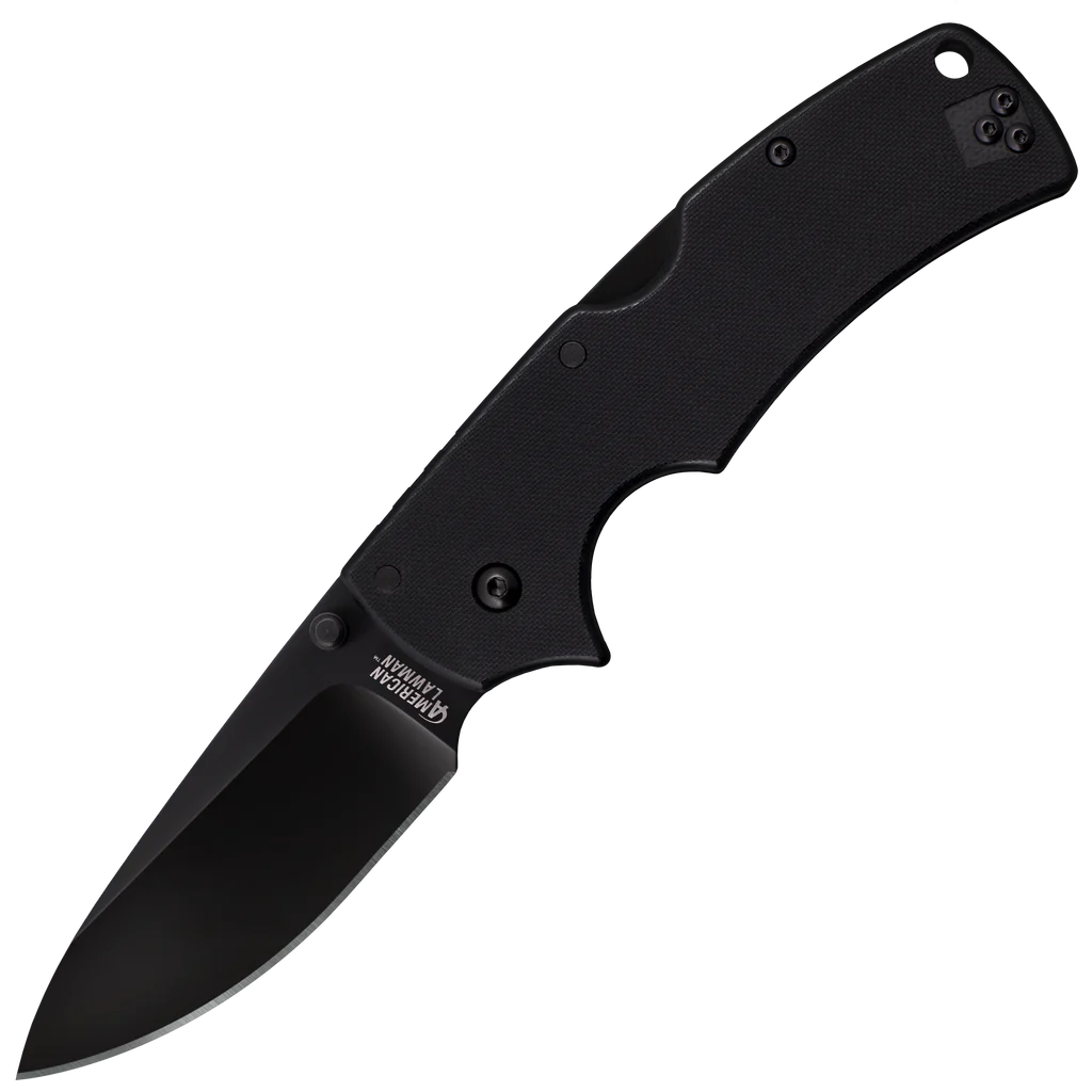 Cold Steel is proud to introduce the American Lawman – named in honor of, and expressly designed to serve, our brothers and sisters in Law Enforcement. Available in two sizes, these rugged knives are designed to perform in the most extreme environments while still remaining comfortable to use and easy to carry. Their drop point blades are big and sharp enough for almost any task while remaining "Civilian Friendly" in appearance. Made from high performance American S35VN steel and hollow ground to a thin, hand-polished edge, each blade is also DLC (Diamond Like) coated for added endurance and corrosion resistance. The Lawman’s handles are also designed to be as versatile and user friendly as possible. Made from G-10, they are contoured for grip security in even the worst conditions. A lock failure on your folder is incredibly dangerous – but if the lock fails on a police officer's knife in the line of duty, it could be disastrous! That's why we have equipped each American Lawman with our Tri-Ad locking mechanism. Designed to withstand terrific impact forces and shock, it has passed some of the most gruesome torture testing in the industry.