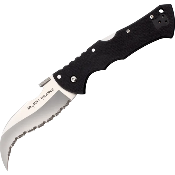 Our fans have been clamoring for us to bring back this classic and iconic blade, and now we are proud to announce a newly re-designed knife that we have christened the Black Talon II! A design collaboration between Cold Steel President Lynn C Thompson and custom knife-maker Andrew Demko, the Black Talon II is a modern masterpiece! It's sinuously curved, needle sharp blade still features the distinctive down-swept point and pronounced belly of the original, but with all new high end American S35VN super-steel and a re-designed tip for additional strength and durability. The textured premium G10 scales offer maximum retention and grip even in cold or wet conditions while still being kind on your clothing when drawn from the pocket. The contrast between the deep black of the scales and the exquisite rich satin polished blade further emphasize the flair and style of this good-looking and elegant folder. Featuring our high performance Tri-Ad locking mechanism for added safety and strength, this thin, lightweight and eye-catching knife is sure to be the talking point of anyone's collection!