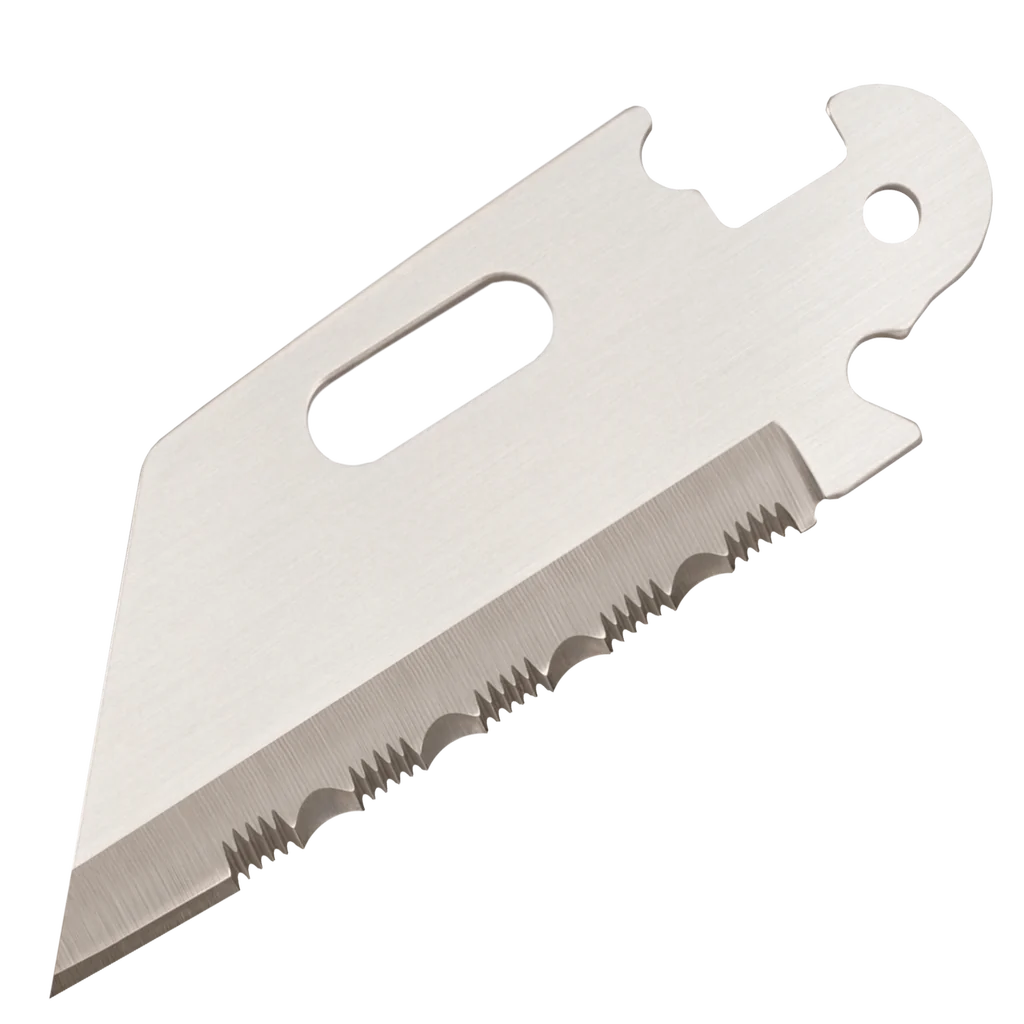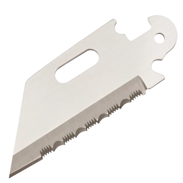 • Pack of 3 serrated utility blades made from 420J2 stainless steel with a satin finish. These blades are replacements for the Cold Steel Click N Cut W/3.