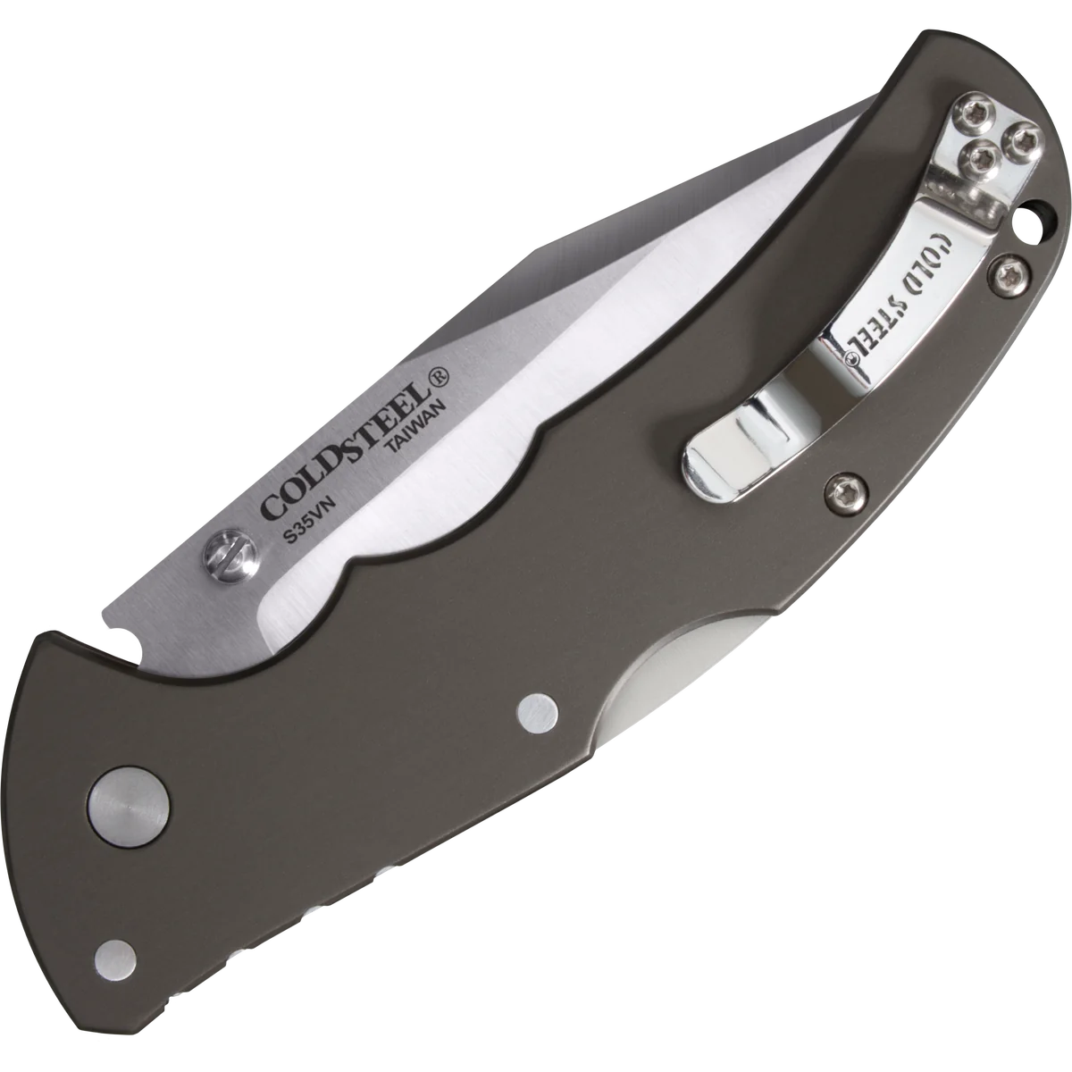 - Folding knife made from S35VN stainless steel with a satin finish in a clip point style. Black 6061 aluminum handle with a reversible pocket clip and a lanyard hole! Uses Cold Steel's Tri-Ad locking mechanism.