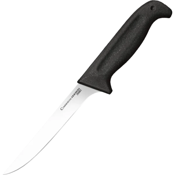 Cold Steel's series of kitchen knives, the Commercial Series, will race through just about any task you can imagine. Theses blades are cryo quenched and then precision flat ground for maximum cutting power. All models in the series come with a razor sharp edge that lasts and lasts. The handles are, in a word, terrific! Carefully designed to ensure a strong, secure, yet comfortable grip, they are made from Kray-Ex for maximum strength without adding unnecessary weight.