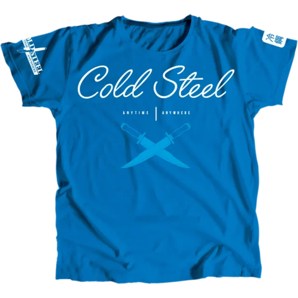 Show off to the world! You know who makes the best knives! Cold Steel now has a variety of apparel items for almost any occasion. Cursive Cold Steel logo and crossed Natchez Bowies on the front. C.S. logo on sleeve. 100% cotton tee.
