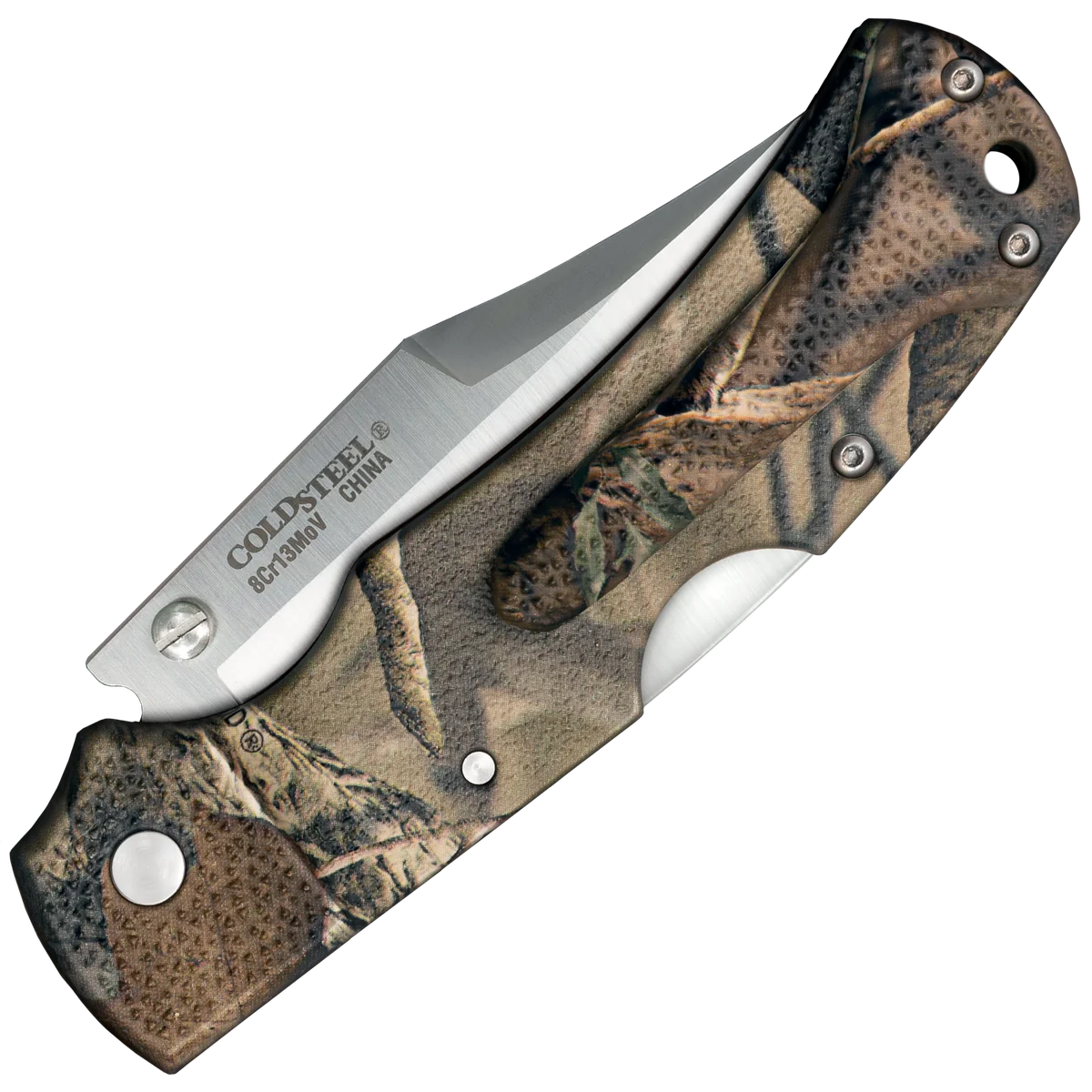 If you’re looking for a budget-friendly yet high-performing folding hunter, look no further than the Andrew Demko-designed, value-packed Double Safe Hunter. One glance at the Double Safe may recall Cold Steel knives of yesteryear as it was modeled after the popular old-school Voyager. Its wide, clip-point blade is 3 ½” in length and comprised of 8Cr13MoV steel, tempered to 57-58 Rockwell hardness. No matter the job, you can be confident you have the right knife at hand, with a blade small enough for intricate cutting tasks, yet big enough to skin anything from a mouse to a moose. A dream to use for any length of time, its glass-filled nylon (GFN) handle is thin and ergonomically pleasing and features a replaceable plastic pocket clip. Plastic pocket clips are gentle to your hand and your surroundings, limiting the snags and scratches to upholstery and other surfaces that steel clips have been known to cause. As always, Cold Steel had your fingers in mind when designing the Double Safe. Its state-of-the-art rocker lock features a secondary safety mechanism, that when engaged is enormously resistant to shock and impact. With the Double Safe in hand, hunters on a budget can be assured they’re totally prepared for any adventure.