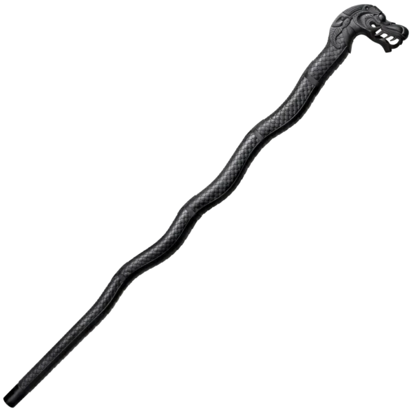 The mythical dragon has captured the imagination of man for centuries. Asian folklore casts them as benign creatures, man's allies, or as symbols of imperial Chinese power, used as motifs on palace walls, and on soldier's breastplates. In the west, they were known to be great adversaries, fire breathing, cleaver beasts. Legends aside, a dragon is a powerful creature possessed of extraordinary physical attributes, which command respect across the board. It is for this reason we have chosen to use the dragon as the inspiration for our latest walking stick. It is modeled after an intricately carved Dragon Stick from our President, Lynn C. Thompson's collection and is reproduced using expensive, hand engraved injection molds. The detailing is astonishing, with scales running the full length of the undulating shaft, and a face with snarling fangs, it is a stick you'll be proud to be seen with on almost any occasion. It is fashioned, like many of our other walking sticks, from the highest grade of high impact Polypropylene available, assuring its imperviousness to the elements and guaranteeing it is virtually indestructible. Black in color and sinuous in shape and form, it offers light to medium support and a number of grip options making it unusually suitable as an aid to balance.