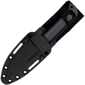 - Fixed one piece drop forged 52100 carbon steel blade with a DLC finish in a drop point style. black carbon steel handle with a lanyard hole. Comes with a secure-ex sheath for transportation!
