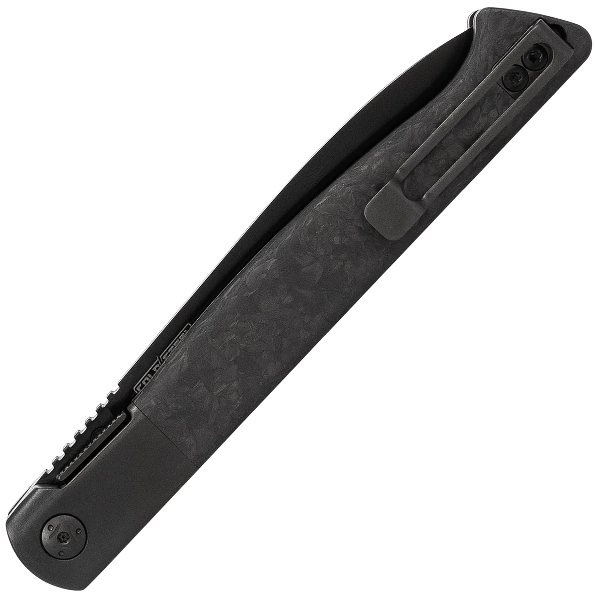 - The knife's sleek design is complemented by a practical tip-up pocket clip.