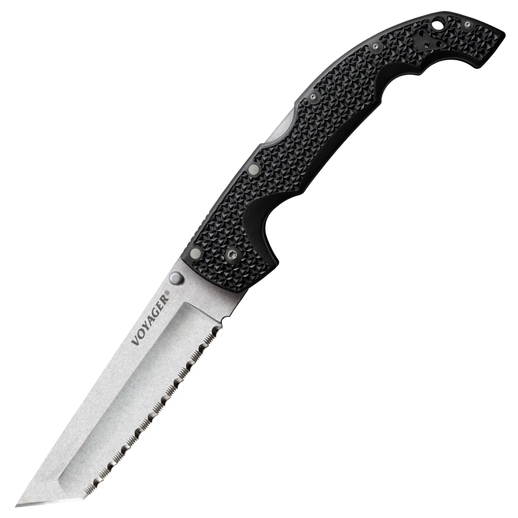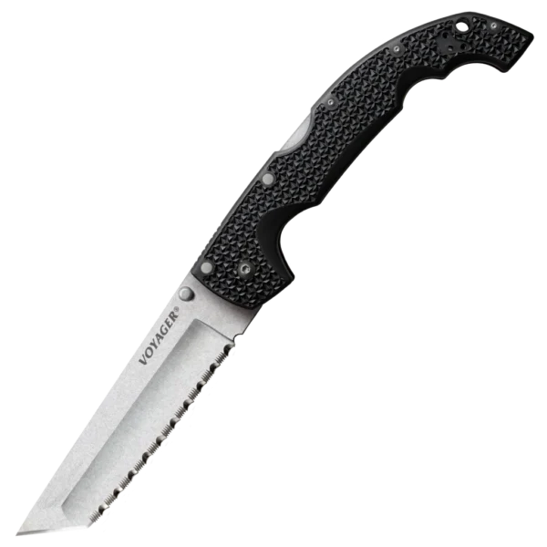 The Cold Steel Voyager series is designed to be the true “everyman” knife. Lightweight, comfortable, and super sharp, they are rugged, dependable and perfect for hunting and camping as well as general utility and daily cutting chores. Voyagers excel in many survival and rescue applications, and they have proven to be very popular with Police and Military personnel, who appreciate the combination of the cutting performance and safety that they offer. Each knife in our extensive Voyager series is precision engineered and held to our most exacting standards. The Voyager series features Japanese AUS10A Alloy Blades, and our Tri-Ad locking mechanism – which is quite possibly the most secure, safe and shock resistant lock on the market today! The Voyager’s ergonomic Griv-Ex handles (reinforced with heat treated 6061 aluminum liners) provide both great comfort and a secure grip even under extended use in tough conditions. Available in two sizes and with numerous blade and edge configurations, there’s a Voyager for everyone.