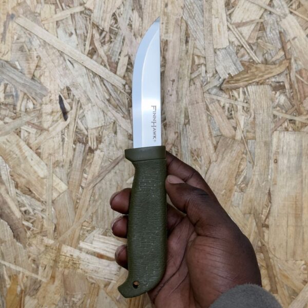 A design collaboration between Andrew Demko and Lynn C. Thompson, the Cold Steel Finn Hawk is the latest in our series of inexpensive hard wearing bushcraft and outdoor tools. Its traditional Nordic styled “Scandi Ground” German 4116 steel blade is sub-zero cryo-quenched for superior edge holding potential, with a steep 7.5mm blade bevel and a functional curving belly for skinning and slicing strokes. Furthermore, its 4” blade is more than big enough for most game processing tasks, not to mention for camp chores and food prep too. The Finn Hawk’s handle is two time injection molded. The first layer of high-impact polypropylene is strong, durable and highly weather resistant, while the outer layer (made of TPR rubber) has a whorled spiral pattern providing a food safe, comfortable and secure grip in even the worst conditions. The Finn Hawk is supplied complete with a slim line secure-ex polymer sheath with integrated belt loop.