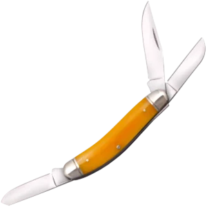 This version with 3 blades, which has been customarily called a Stockman knife, has the standard clip point and spey point blade of the Trapper with the addition of a sheep's foot styled blade. Like the Trapper knives, it's available in three handle styles. Features: Clip point, spey, and sheepsfoot blades. Nail nick openers. Yellow bone handle. Non-locking slip joint mechanism.