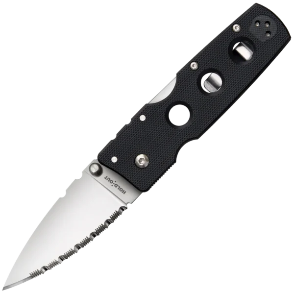 In many ways, the Cold Steel Hold Out series are ideal “EDC” or every day carry knives – providing the comfort and peace of mind that comes from carrying a high performance folder but in an astoundingly lightweight and easy to carry package. Their beautiful satin polished S35VN steel blades are extremely functional. They are flat ground from the spine, with a shallow “V” cross-section culminating in a razor sharp hand-honed edge. Continuously curved from the heel to the needle-sharp tip, the blades cut and shear through tough, fibrous material with ease and makes short work of daily tasks and cutting chores.