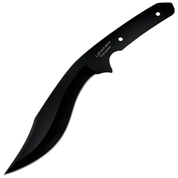 Luke LaFontaine is a long-time member of the Cold Steel crew. Known primarily for his expertise in Japanese Sword Arts, he is also a highly knowledgeable Western Swordsman, historical fencer and amateur historian. As an actor, stuntman and weapons expert for the big screen, Luke has perfected a wide range of skills, including knife throwing. Combining his love of historical pieces, with his passion for "sword and sandals" action adventure movies, Luke has designed an eye catching and fun knife that will serve multiple roles. The LaFontaine Thrower is heavily curved, with a wide belly, sharp cutting edge and an acute tip, that’s accented by an unsharpened false edge. With an integral finger guard to stop your hand from sliding onto the sharp edge, and a tapered easy-release handle for throwing, the LaFontaine Thrower is a capable throwing knife.
