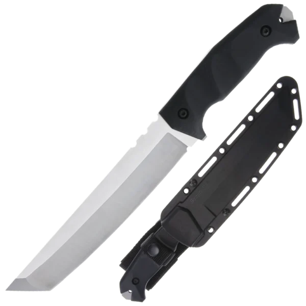 When it comes to modern knives, Cold Steel® is implementing its latest design concepts with the Tanto collection, the blades are significantly thicker than many other commercially available models. With their robust, reinforced tips, elegantly curved cutting edges and stable one-piece construction, they offer unprecedented performance. Each blade has a flat-ground primary cutting edge and a secondary bevel with a chisel grind . Both have been finely ground by hand and are incredibly sharp. The ridge line between these two bevels (Yokote) forms an extremely effective tip. The strong full tang is lined with two GFN grips, ensuring a comfortable, secure hold. A dependable workhorse knife – It is available in three different sizes and is probably one of the best fixed blade knives in the world today. A Secure-Ex® sheath is included.