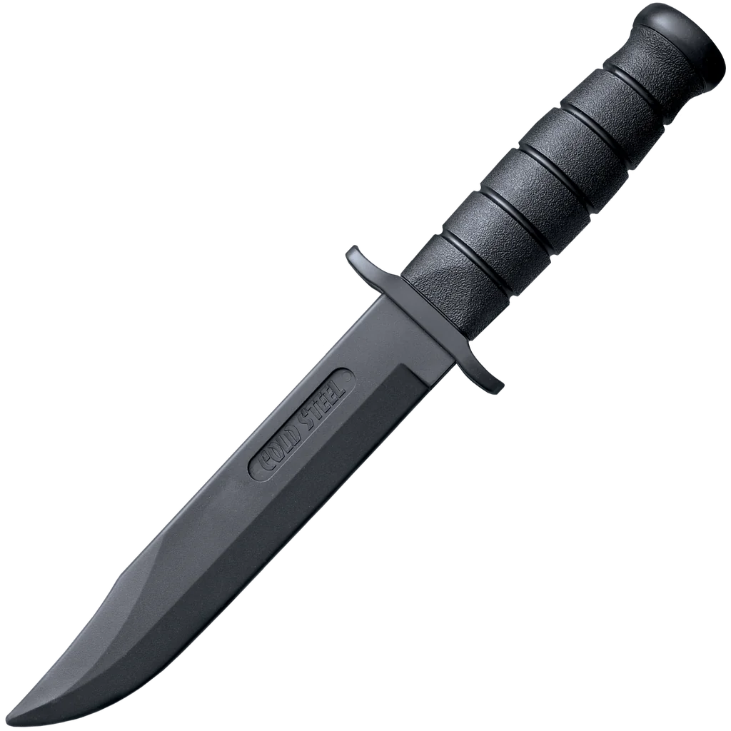 Now you can practice with some of our most popular knife designs, in relative safety, with our new rubber training knives. We have rubber training versions of our Peace Keeper™ I, the R1 Military Classic, Recon Tanto, Leatherneck-Sf, Laredo Bowie, Black Bear Classic and the Trench Knife Trainer. The Rubber Training Leatherneck SF has been carefully fashioned to look as realistic as possible so they can be effectively used in solo practice, training drills, disarm drills, demonstrations and any other activity where you want a reasonably close approximation of realism but not the extreme danger and risk associated with an actual knife. The Santoprene rubber blades are soft enough to prevent the likelihood of most bodily injury. They do however, have a level of firmness that might cause injury to the face or the eyes, so it is recommended that appropriate eye protection or a fencing mask is utilized at all times when using a Cold Steel® rubber training knife.