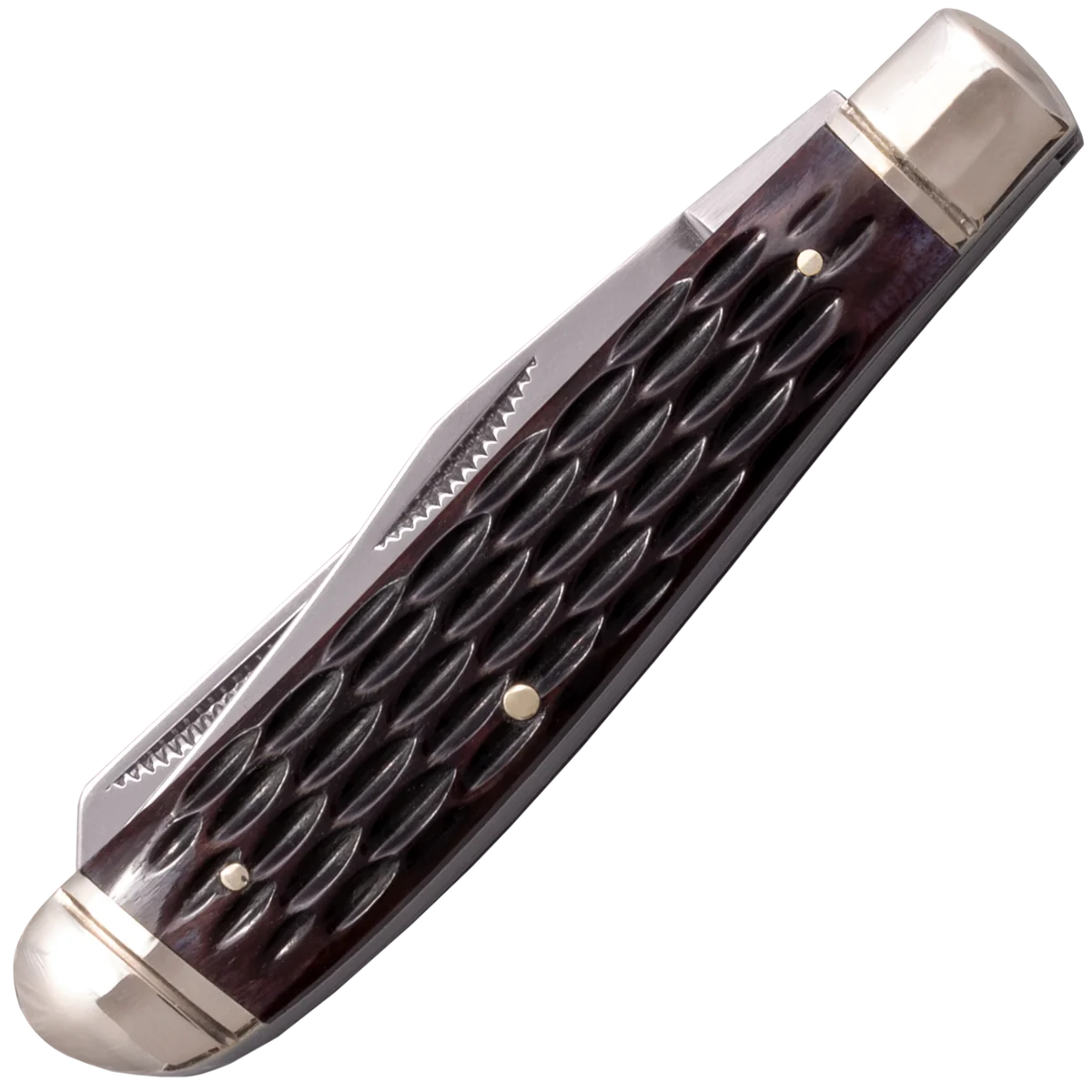 New for 2022 – the Cold Steel Mini Trapper. Cold Steel's take on traditional trapper knives feature classic styling, utilizing authentic bone handles and polished 8Cr13MoV steel blades honed to a sharp edge. Named for the consumer they were designed for, traditional trapper knives were popular with those who trap small game. Thanks to their multiple blade styles – most often a clip point and a spey blade – in a single lightweight folding knife, they could prepare traps and process game with one tool. Measuring 3.5" when closed, the Mini Trapper houses 2 blades, a 2.7" Clip Point and a 2.6" Spey Blade.