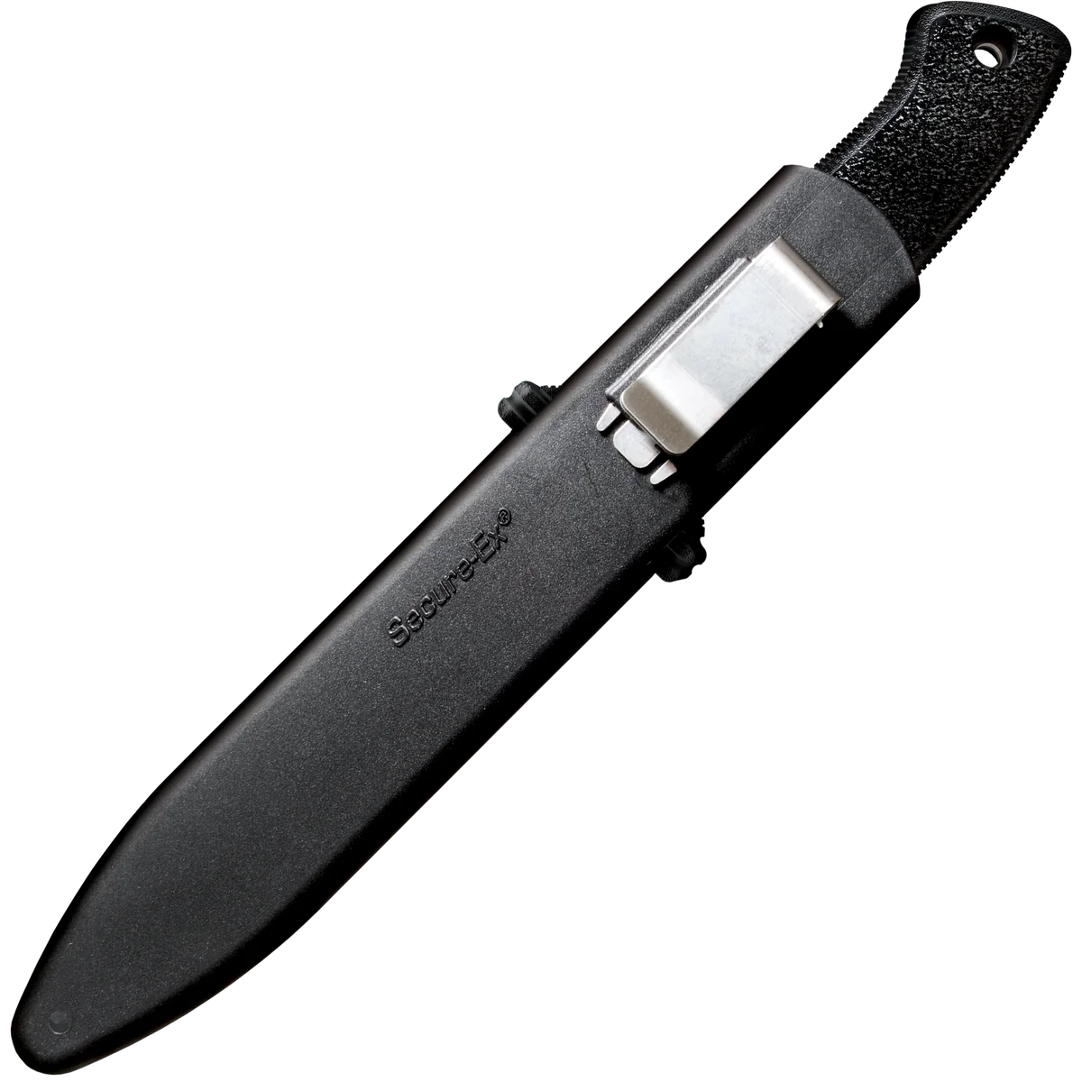 - Full tang fixed boot knife made from 4116 stainless steel with a satin finish in a clip point style. Black Kray-Ex handle with a lanyard hole. Comes with a secure-ex boot clip sheath.